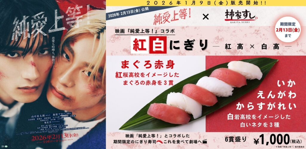 柿家すしと映画『純愛上等!』のコラボが1月9日(金)〜2月13日(金)に実施決定!